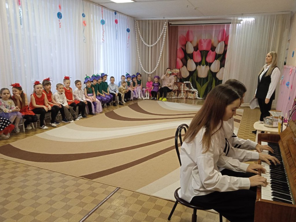 Среди учеников музыкальной школы, свой родной детский сад навестила бывшая выпускница Арина Леденева, она вместе с Виденкиной Златой дуэтом исполнили несколько музыкальных произведений: С.Джоплина «Артист эстрады» и Г.Балаева «Армянский танец».