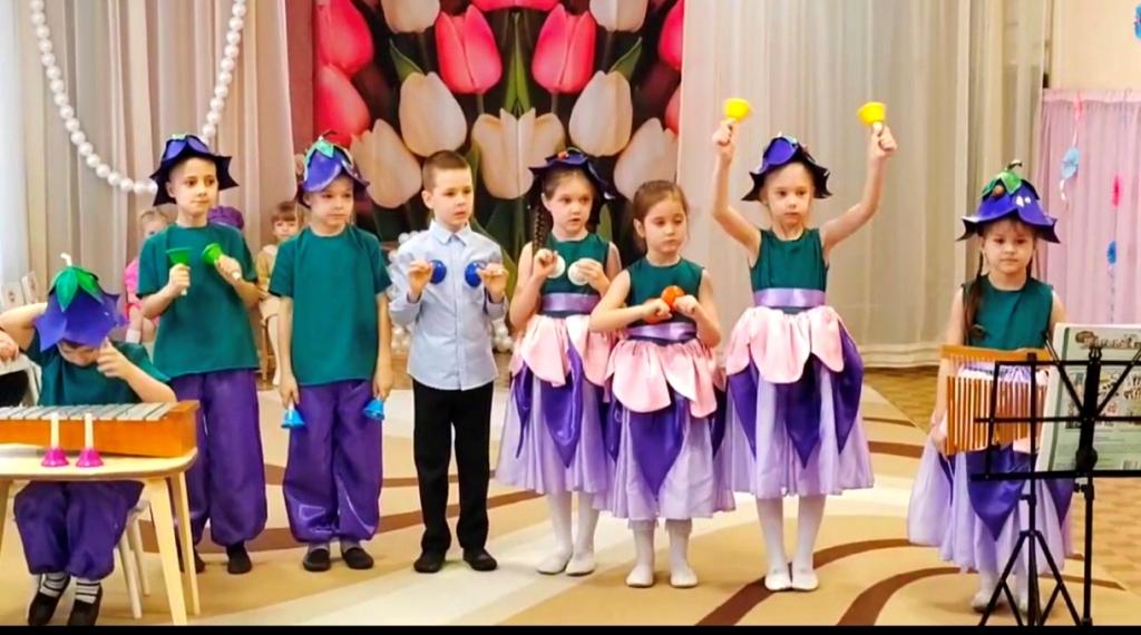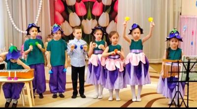 Воспитанники детского сада не остались в стороне и подарили гостям несколько задорных и ярких композиций, музицируя на различных детских музыкальных инструментах.