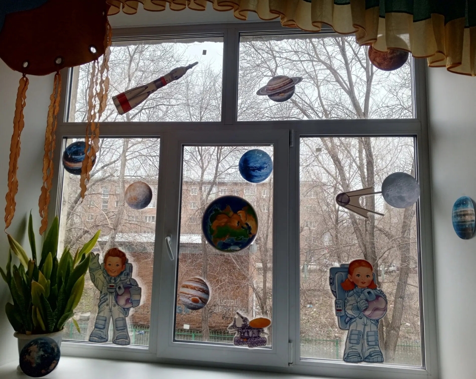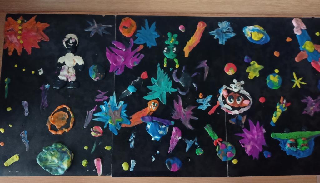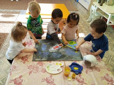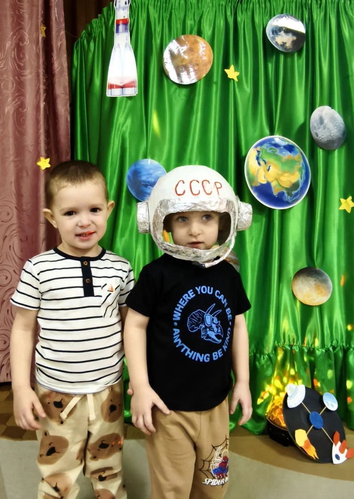 Педагоги проводили тематическое занятие «Космос». Дети познакомились с историей возникновения праздника, слушали рассказы о Юрии Гагарине и других героях, которые покорили космос, таких как Леонов, Терешкова, Титов и других. Дети с большим интересом слушали рассказы Бороздина «Первый в космосе» о первом человеке, отправившемся покорять космическое пространство. Рассматривали энциклопедии о космосе, делились впечатлениями. В группе оформили тематическую выставку космических рисунков. У детей осталось море позитивных эмоций, появилось желание быть похожими на сильных духом и мужественных космонавтов.
