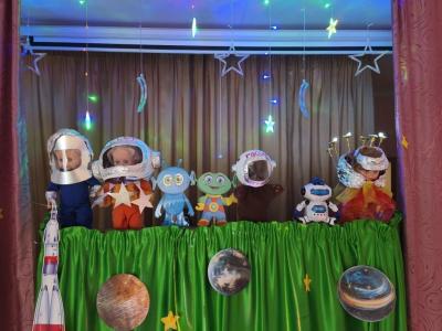 Дети в течение недели с удовольствием рисовали рисунки для выставки на лестничные пролеты. В конце недели детям показали кукольную сказку: «Космическое путешествие игрушек». Дети получили много знаний и положительных эмоций. Космическое путешествие удалось на славу!
