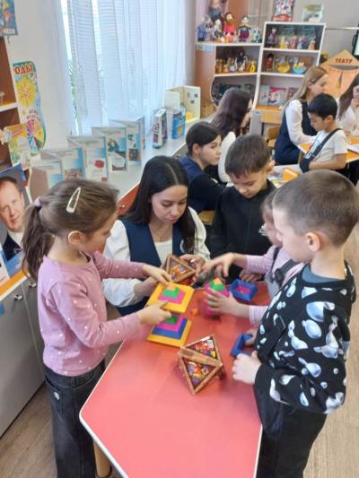 Это головоломка на пространственное мышление, где нужно было составлять фигуры по образцу. Дети поняли, что воспитатель часто использует подобные игры для развития мелкой моторики и креативности у дошкольников.